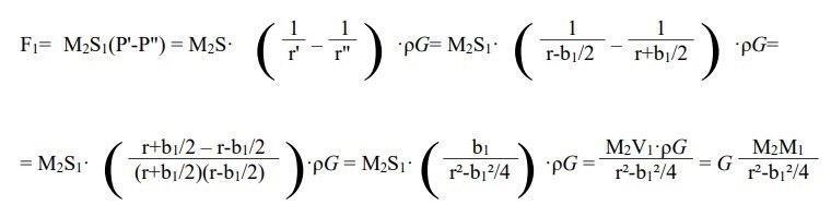 F1= G·M1·M2/(r² – b1²/4)