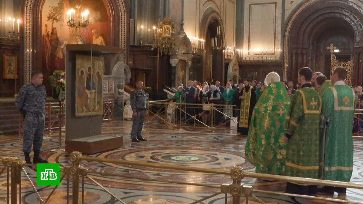 [ Смотреть видео на сайте НТВ ] Православные верующие сегодня встречают День Святой Троицы. Это один из 12 главных христианских праздников. В День Святой Троицы священники надевают зеленые облачения, храмы принято украшать ветвями, которые символизируют обновление людей благодаря святому духу. Празднику уже более полутора тысяч лет — его отмечают с тех пор, как было утверждено учение о трёх ипостасях Бога: Отце, Сыне и Святом Духе. Главной точкой праздника стал храм Христа Спасителя, где патриарх Кирилл служит литургию. В ознаменование праздника в храме выставили икону «Троица» Андрея Рублёва. За безопасностью шедевра древнерусского искусства следят сотрудники Росгвардии. С 1929 года «Троица» находилась в собрании Третьяковской галереи, в середине мая Владимир Путин принял решение о возвращении иконы Русской православной церкви. [ Смотреть видео на сайте НТВ ]