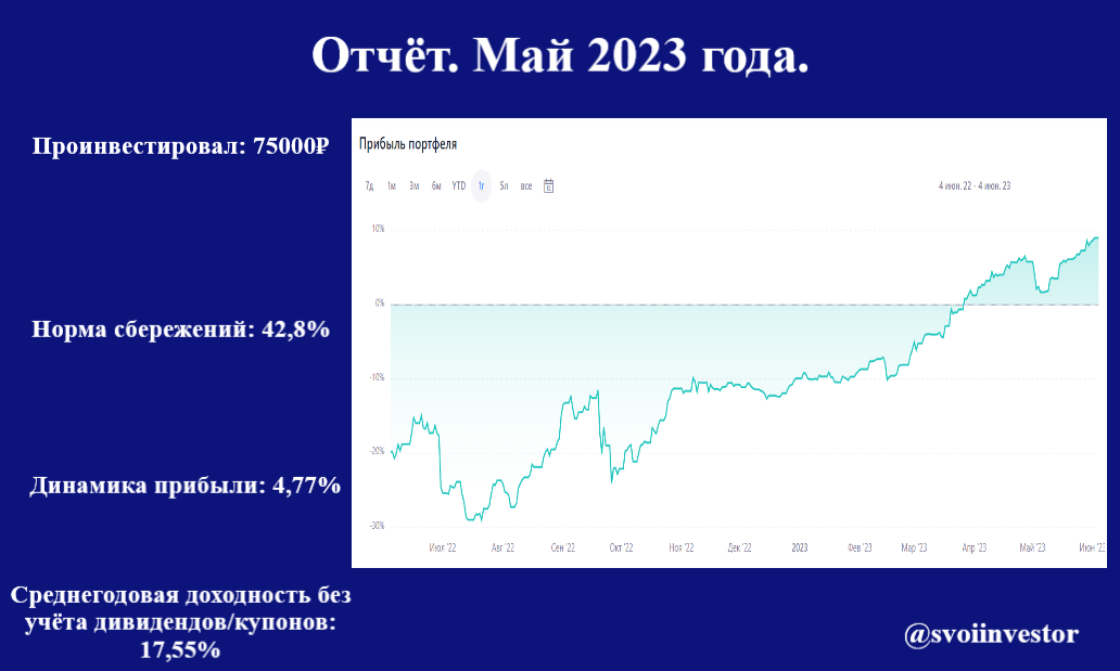 Всех приветствую. Май пролетел быстро, у меня образовалась командировка в этом месяце, которая захватила и начало июня, поэтому отчёт за май немного припозднился. Напомню вам, что ежемесячно я пишу отчёт по моим финансам, инвестициям, лайфхакам с деньгами, финансовой грамотности и прочем. Перейдём же к самому отчёту.