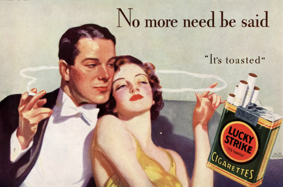 В 1950 в Америке сигареты рекламировали по телевиденью врачи. Они говорили о том, как здорово сигареты помогают расслабиться и не напрягаться. В 60х годах среднестатистическая Американская женщина выкуривала по 2 пачки сигарет в день. В последствии данная политика обернулась эпидемией рака и разного диапазона заболеваний, нервной, кровеносной, гормональной и дыхательной систем.