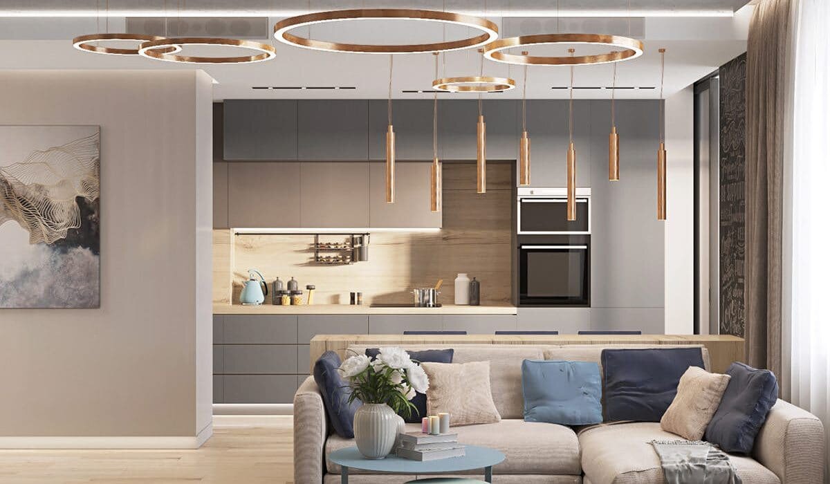 Планирование дизайна начинают с самого большого помещения, то есть с кухни и гостиной.