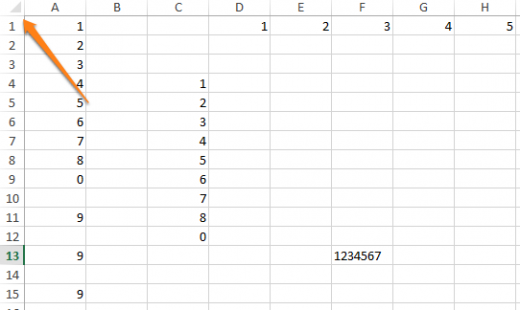 Все ячейки можно выделить комбинацией клавиш Ctrl + A, которая, кстати, работает и во всех других программах. Однако есть более простой способ выделения. Нажав на кнопку в углу листа Excel, вы выделите все ячейки одним кликом.