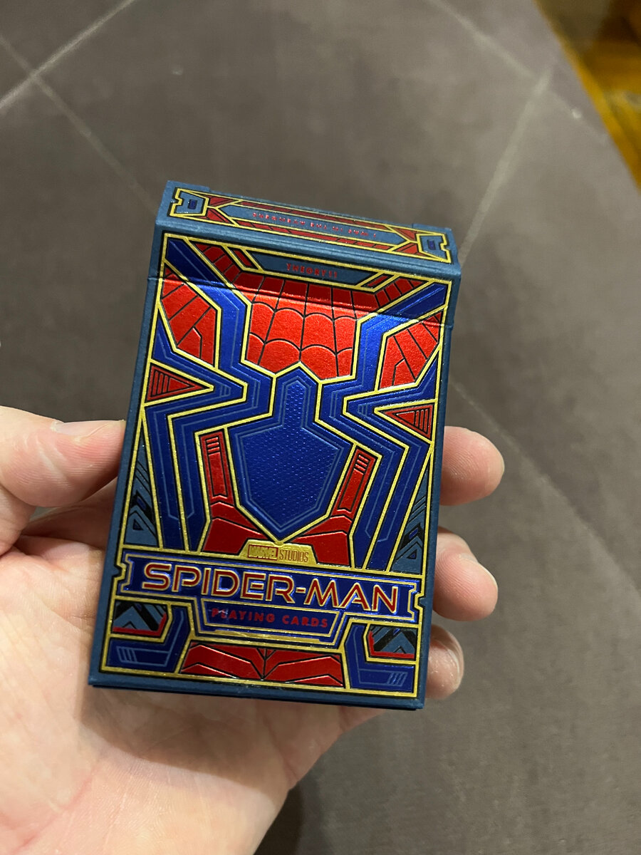 Здравствуйте дорогие гости и зрители этого канала ! В этой статье хочется поделится мнением о необычной колоде карт, релиз которой, состоялся в конце 2022 года, компания Теория11 как и всегда, порадовала всех " любителей карточного искусства " новыми красками, их новое творение очень хорошо отобразило сюжет всей новой трилогии Человека Паука, наверняка любой, кто смотрел это кино не остался равнодушным, хотя на мой скромный вкус, старая трилогия режиссера Сэма Рэйми вышла поинтереснее и она затрагивает куда больше проблем современного общества ! Переходим к колоде, дизайн коробочки очень грамотно проработан На лицевой стороне, красуется костюм человека паука, который был впервые обширно представлен в фильме " Война Бесконечности " еще этот костюм Питеру Паркеру по сюжету сделал - Тони Старк ! На задней части коробочки, по стандарту, отображается рубашка игральных карт, на ней мы можем видеть щупальцы великолепного костюма из кинофильма, неплохое решение для фанатов данной картины !