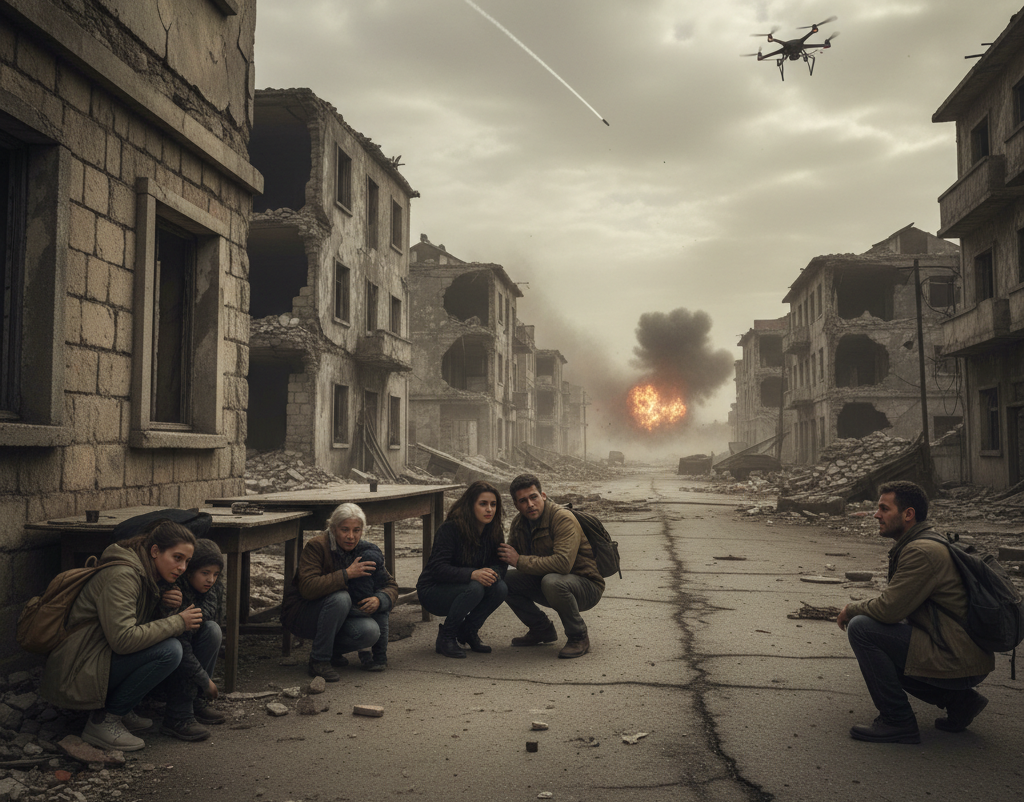 2.5. Если обстрел застал на одном из верхних этажей и нет возможности спускаться — следует сесть на пол у стены, противоположной обстрелу. Желательно, чтобы между атакующим устройством и человеком было не менее двух стен. За несущими стенами прятаться безопаснее. Коридор часто является самым защищённым местом в квартире. Ванная и туалет тоже могут подойти из-за компактности и наличия несущих стен, но менее безопасны из-за зеркал, труб с водой и кафеля.
