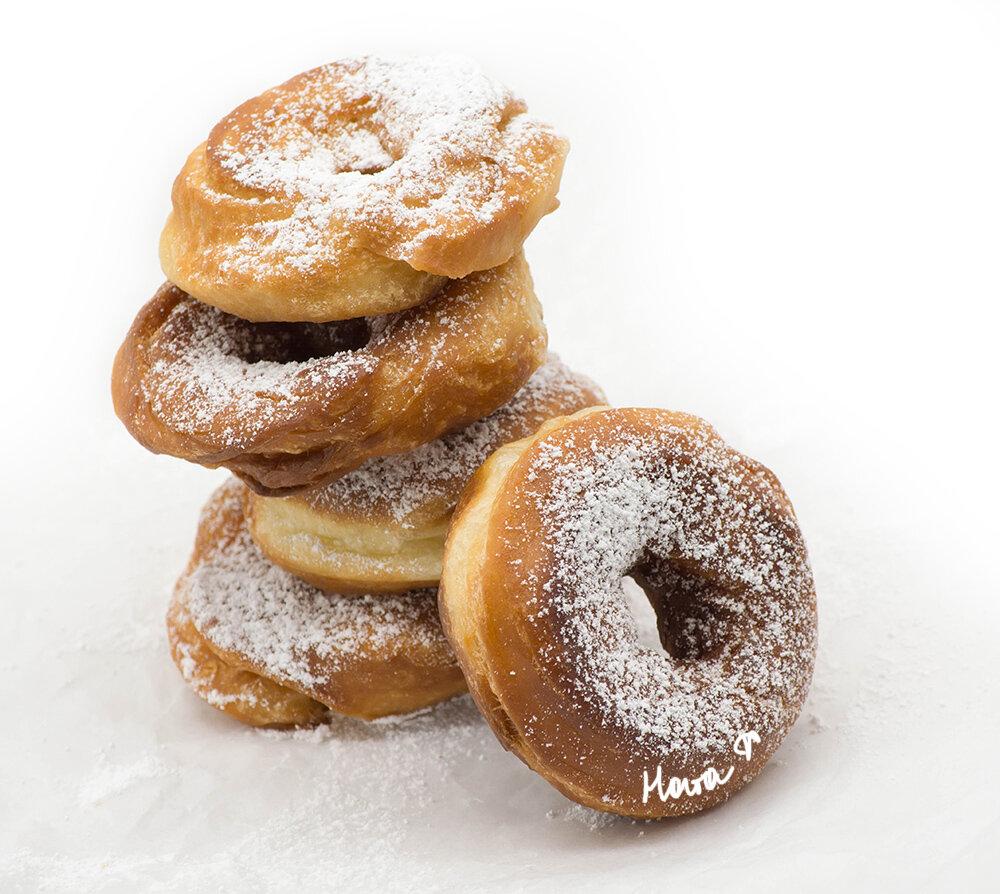 Ингредиенты: Сливочное масло растопить. В миске смешать воду, яйца, сахар, соль, дрожжи и сливочное масло. Добавляя муку вымесить тесто, не слишком крутое, но чтоб из него после можно было сформовать пышки:) Накрыть миску полотенцем и оставить подниматься 1-2 часа. Затем сделать из теста шарики по 30-40 грамм, накрыть их полотенцем и дать расстояться 20 минут. Сделав из шариков колбаски и очень хорошо (иначе разойдутся при жарке) слепив кончики, сформировать пышки, и сразу жарить в разогретом масле. Готовые пышки посыпать сахарной пудрой.