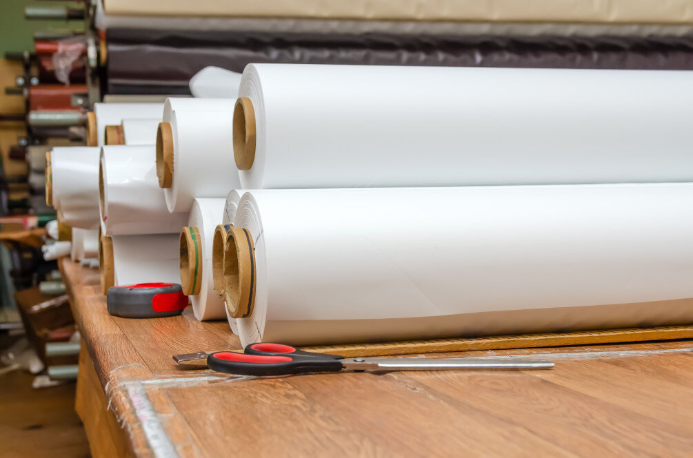 Натяжной потолок делают из поливинилхлоридной (ПВХ) пленки или из полиэфирной ткани (полиэстер, пропитанный полиуретаном). Потолки из виниловой пленки изготавливаются под индивидуальные размеры и конфигурацию помещения путем сварки полос поливинилхлорида шириной от 1 до 5 м на ТВЧ-станках. По словам Вадима Богача, при монтаже полотно натяжного потолка разогревают газовыми пушками до температуры 70 градусов, после чего пленка размягчается и ее растягивают на предварительно смонтированный профиль. Наиболее популярные фактуры — глянцевая, матовая и сатиновая.