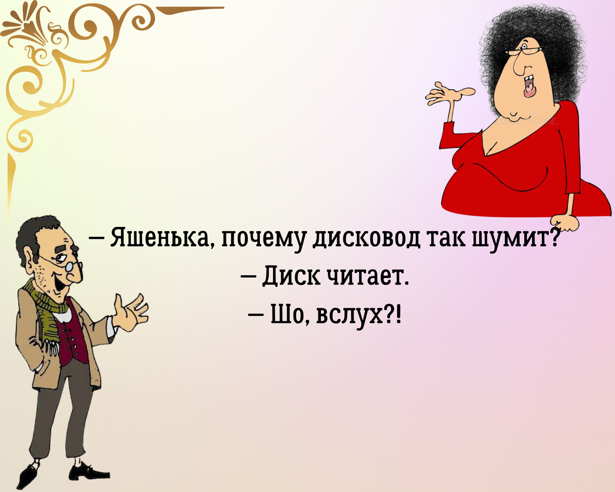 И снова с вами Говорим обо всем. Здравствуйте. Предлагаю начать новую трудовую неделю с позитива. Чтобы хорошее настроение не покинуло вас не только в течение дня, но и всего времени, предлагаю почитать забавные шутки и анекдоты. На уроке учительница рассказала о великих изобретателях и спрашивает: — Ребята, а что бы вы хотели изобрести? — Я бы изобрел такого робота, чтобы нажал кнопку, а он сделал за меня все уроки! — Яша, ну ты и лентяй! А что скажет Изя? — А я бы изобрел автомат, который бы нажимал на эту кнопку! — Изя, это правда, что Яша дал тебе пощечину, а ты никак не отреагировал? — Хорошенькое дело — не отреагировал! А кто же тогда упал? Несколько забавных историй на армейскую тему. Фронт. Под команду «В атаку, урааааа!» все ринулись вперед, один Рабинович пятится назад. Замполит к нему: — Ты куда, расстреляю! Рабинович: — Шо ви кричите, я-таки беру разгон! Генералу представляют отличников боевой и политической подготовки. Они делают шаг из строя и представляются: — Соколов!