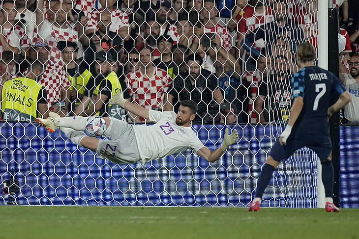 Это не первая серия пенальти имени Симона: в четвертьфинале Евро-2020 со Швейцарией он тоже вытащил два удара. После них еще соперник влепил выше, а Испания прошла дальше. Правда, на Италию в полуфинале тогда уже не хватило, там серию уже проиграли. Зато в Лиге наций итальянцев в 1/2 финала обыграли в основное время – благодаря голу Хоселу в концовке, и забрали титул.