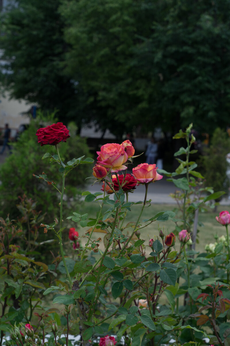 В этом году розам не повезло, сначала холода до заморозков, потом засуха. И городские власти поливом себя не утруждают. Потому вид у цветов непрезентабельный. Даже к тургеневскому празднику у памятника Тургеневу не полили бедные растения. Появились розы на штамбах. На высокий подвой, образующий ствол прививают несколько розовых веток. Так розовый куст похож на небольшое деревце. На подвой привито несколько разных сортов. Есть фиолетовые почти черные и белые. Они тоже на штамбе. Есть и обычные кусты, привычной формы. Поразительным образом лучше всех себя чувствуют полосатые розы. Словно засуха им ни по чем. Или по ним менее заметно. И на них тоже полно тли. На выкосить все у города деньги есть.. на уход за тем, во что уже вложены деньги почему-то нет. Набережная Оки.. последствия покоса.