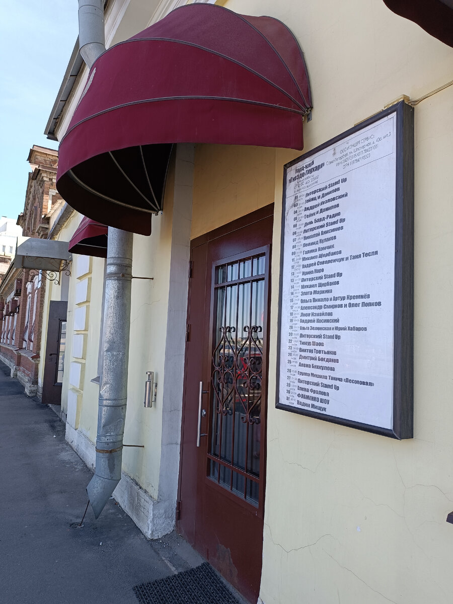 Даже жители Петербурга нечасто бывают в этом районе. Хотя это набережная Невы и памятников рядом немало. Их я показывала в другой статье, ссылочку дам в самом низу. А сегодня покажу, где же я смотрела концерт Елены Фроловой. Это арт-кафе Гнездо глухаря. Находится оно на Воскресенской набережной, 16. Ближайшее метро - Чернышевская - закрыто неизвестно на сколько. Так что только наземный транспорт или пешие прогулки. Необычное местечко. Такое же есть в Москве. А у нас филиал. Похожее место, где идут не только концерты, но и спектакли, кафе Бродячая собака. О нем постараюсь тоже написать, хотя давненько там не была. Несколько фотографий пространства. Новое оформление - портреты Высоцкого и Задорнова. Коллаж с артистами, выступавшими на сцене кафе. А рядом стена с автографами. Я слушала здесь еще Веронику Долину. Имен много, в ближайших планах у клуба выступление Харатьяна, Малежика, Шаова, групп Песни нашего века и Поющие гитары. Если близка такая музыка, можете заглянуть. Елену Фролову