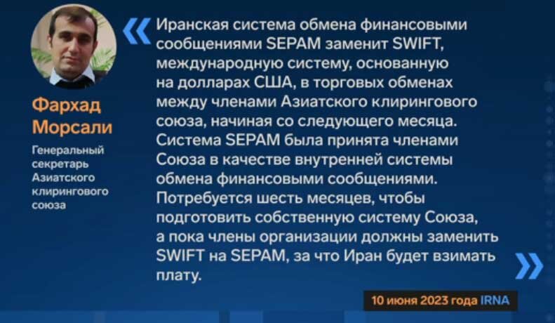 Иранская система SEPAM - это аналог SWIFT.