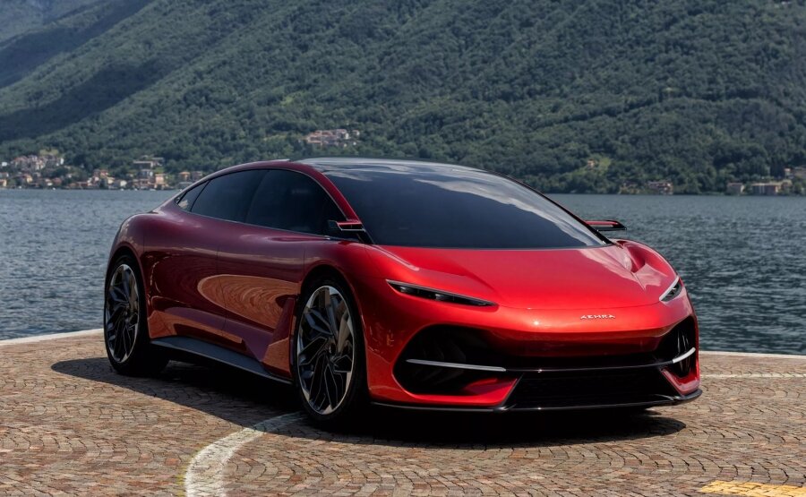 Итальянско-американский производитель электромобилей Aehra представил свою вторую модель, и она ничуть не уступает внедорожнику, с которым мы познакомились в прошлом году. Последнее творение компании — седан, и именно так мы должны называть его, поскольку Aehra решила не давать имена ни одному из своих автомобилей. Это позор, потому что слово «седан» до сих пор вызывает в воображении образы разумных, консервативных семейных автомобилей, когда седан от Aehra совсем не похож на данный образ. Низкое четырехдверное купе с агрессивно наклоненными передним и задним стеклами станет конкурентом Porsche Taycan. При этом его можно принять за суперкар с определенных ракурсов, особенно если двери подняты — это черта общая с внедорожником. В то время как гладкая верхняя часть кузова лишена каких-либо вычурных деталей, нижняя часть имеет более сложный дизайн с несколькими вентиляционными отверстиями и аэродинамическими формами, которые добавляют мускулистости дизайну и, по-видимому, помогают улучшит