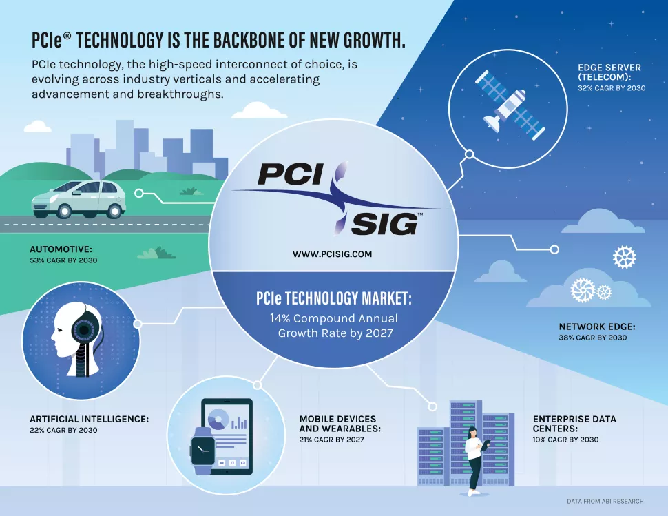 Организация PCI-SIG, разрабатывающая данную технологию, опубликовала предварительную версию 0.3 спецификации, в которой обозначены ключевые функции и архитектура будущего PCIe 7.0. Основным достижением новой спецификации является увеличение скорости передачи данных до 128 ГТ/с для каждого контакта. Это существенно превосходит скорость предыдущих версий PCIe: 64 ГТ/с в PCIe 6.0 и 32 ГТ/с в PCIe 5.0. Таким образом, 16-канальное (x16) соединение сможет обеспечить двунаправленную полосу пропускания до 512 ГБ/с без учета дополнительных затрат на кодирование. Для достижения такой высокой скорости передачи данных и пропускной способности, PCIe Gen7 будет использовать амплитудно-импульсную модуляцию с четырехуровневой сигнализацией (PAM4), кодирование в режиме 1b/1b и прямое исправление ошибок (FEC). Такие технологии уже применялись в PCIe Gen6 и будут усовершенствованы в новой версии. PCI-SIG разрабатывает спецификацию PCIe 7.0, следуя точному процессу, состоящему из нескольких выпусков и кон