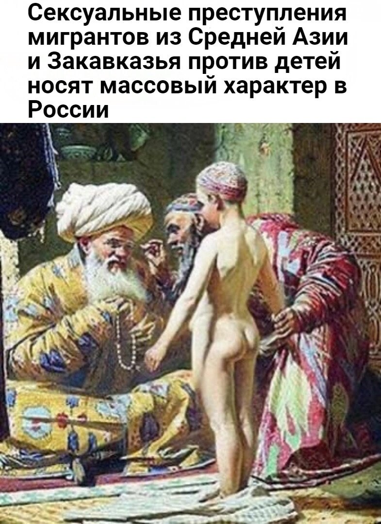 Если в царские и в советские времена представители этих народов приезжали к нам лишь на время торговать дынями, то теперь многие из них проживают у нас практически постоянно, и от своих домашних привычек отказываться не собираются. Сообщениями о сексуальном насилии по отношению к детям пестрят новостные ленты. То в Питере 14-летний узбек изнасиловал девятилетнего мальчика, то 30-летний узбек изнасиловал убил и расчленил восьмилетнюю девочку в Набережных Челнах, то 52-летний узбек изнасиловал и убил 14-летнюю девочку на Камчатке, то таджик изнасиловал четырёхлетнюю девочку в Ростове-на-Дону, а в Иркутске один гастарбайтер умудрился изнасиловать даже котёнка.