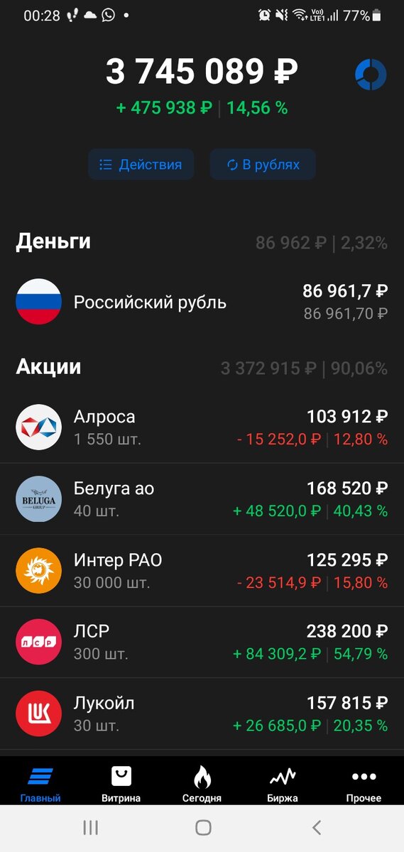 Ладно, что сделано то сделано. На выручку набрала 300 штук Роснефти, уменьшив среднюю по ней с 537 до 509.38 руб. Хороший квартальный отчет и наличие арабов в числе акционеров дают основание полагать, что очередные дивиденды будут еще чуть больше. И самое главное, что они в принципе будут. Ну и на остальное - 545 акций Татнефти, но не префы, а обычку. Чтобы не смешивать поскольку если префы я беру в долгосрок, то обычка Татнефти и Роснефть пока будут хранилищем «кэша» с периодическими дивидендами. А к Распадской я еще вернусь, но после того как начнут прорисовываться хоть какие-то перспективы если не с самой Распадской, то хотя бы со СВО. Ну либо если цена будет слишком привлекательная (ниже 200 руб.), чтобы я смогла устоять и не накупить «по-нашему, по-хомячьи».