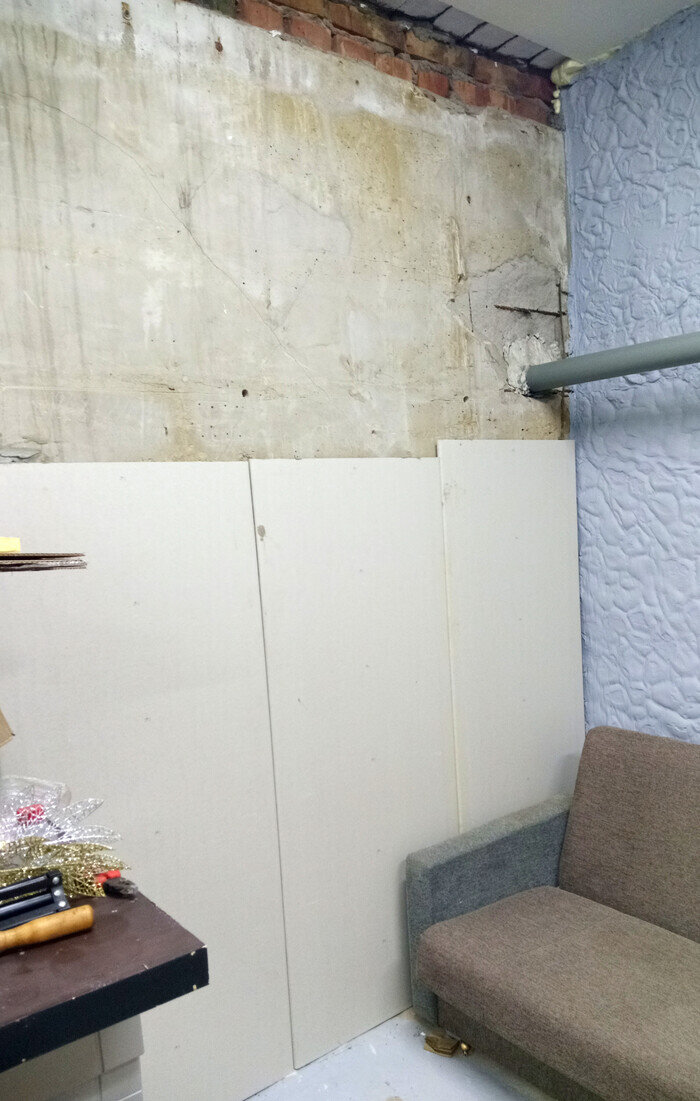 Если женщине трюкнуло в голову, что ей без хотя бы без угла с приличными стенами в гараже хоть застрелись - то шансов у угла точно не осталось. Месяц назад мне срочно потребовался фотоугол и я решительно выкинула диван из гаража на помойку, потому что он этот угол и занимал. Дальше всё было как в тумане, в любую свободную минуту я неслась красить, клеить, разбирать, собирать, шпаклевать и снова собирать. Сегодня цель предлагаю считать достигнутой - угол готов, остальное будет доделываться уже в спокойном режиме. Параллельно из руин было восстановлено фотооборудование, пока в тех объёмах, которые подъёмны. Этапы мероприятия: Старт месяц назад, видно состояние стены и оно удручало. Диван истреблён, фигачу дальше, в промежутках между работой, тренингами и своими замесами дома: Нихрена не получается, потому что ручки из жопки. Но что-то всё-таки получается. Первая попытка сделать стену была признана неудачной и зачищена, сделано заново. По ходу пьесы обожжена нога, в честь чего внезапно от