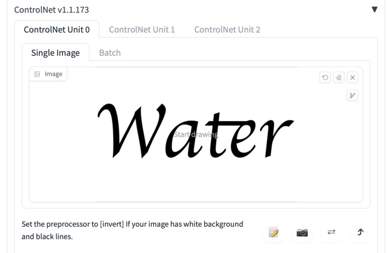 Друзья, вы можете научиться создавать уникальные изображения с текстовыми эффектами, используя нейросеть Stable Diffusion и расширение ControlNet. В предыдущей статье подробно рассказано о расширении ControlNet: Для создания изображений с текстовым эффектом будем использовать графический интерфейс AUTOMATIC1111 Stable Diffusion. Следует отметить, что не все модели производят хорошие эффекты. Экспериментируйте с разными моделями. Метод 1: Txt2img с ControlNet Создайте изображение с черным текстом на белом фоне. Вы можете использовать этот веб-сайт или любой инструмент для редактирования фотографий. Установите размер изображения 768 x 512 пикселей. Сохраните как файл PNG. Перейдите на страницу txt2img и в разделе ControlNet загрузите текстовое изображение на холст изображения. В разделе ControlNet выберите следующие параметры: Введите текст для описания визуального эффекта. Пример текста: вода, капли воды, тень, краевое освещение, отражение, закат Установите размер изображения таким ж