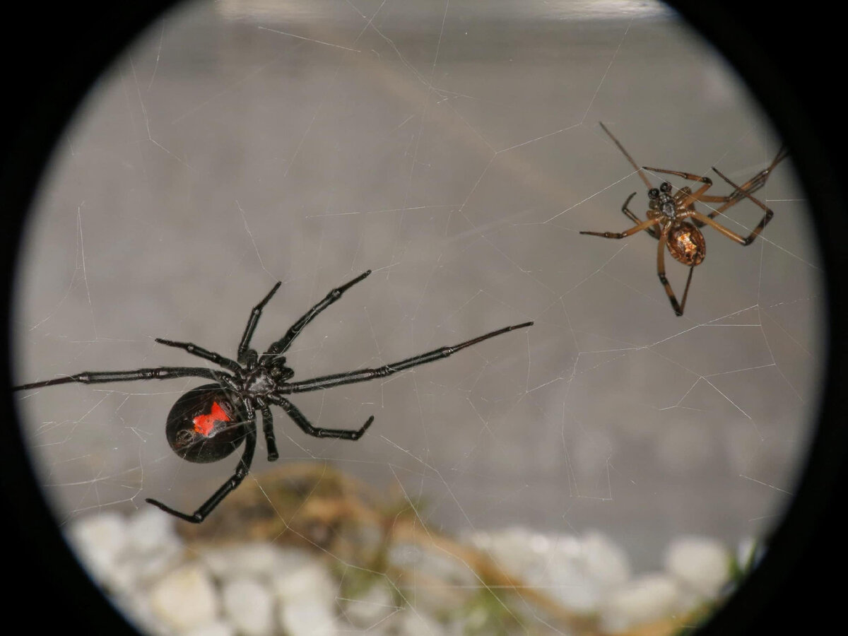 Многие пауки-самцы значительно меньше по размеру, чем самки. Ухаживание для них превращается в опасное занятие, потому что он должен дать понять самке, что он самец, а не добыча. Он обычно предупреждает ее о своем приближении, часто сотрясая паутину. Если он сумеет это сделать, он может приблизиться к ней и спариться. Если ему не повезет, она, вероятнее всего, его съест. Подписывайтесь на канал