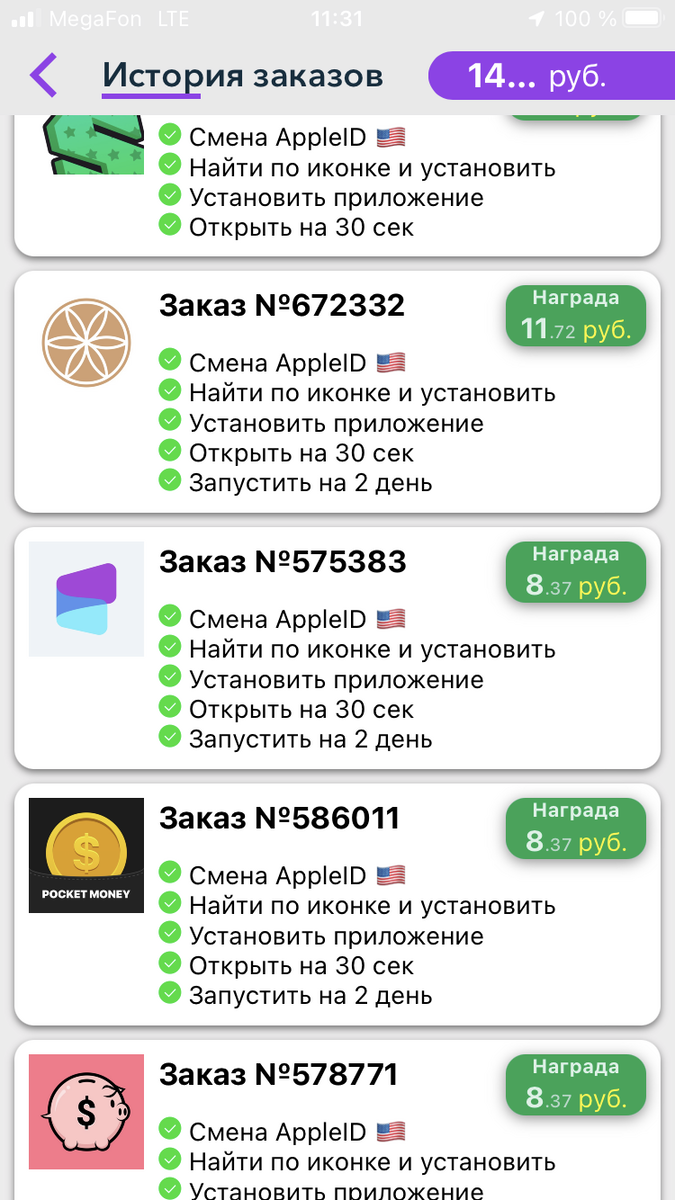 GuruApp - это приложение которое платит за скачивание приложений. Перед началом, оговорюсь, что я никого не принуждаю скачивать. Я просто показываю, что можно заработать вот таким способом. Установка Приложение GuruApp доступно только на IOS. При первом входе вам предложат вести код - 0i8lj9. Он даст вам 5 бесплатных рублей. Сколько можно заработать? Если уделять приложению 30 минут в сутки, то свободно можно зарабатывать 150 рублей в день. По моим наблюдениям задания появляются каждый час, но больше всего заданий в 8:00, 12:00 и 00:00. Например, сегодня в 12:00 было 140 доступных заданий. Как это работает: вы заходите в приложение и ищете задания с русским флагом Далее просто выполняете его и получаете 5-7 рублей. Обычно, каждый час появляется 2-3 русских задания. Следовательно можно заработать около 15 рублей. На эти манипуляции уходит примерно 3-4 минуты. Если вы хотите заработать больше, то приглашайте друзей и меняйте Apple ID, выполняя задания с других стран. Таким образом, мо
