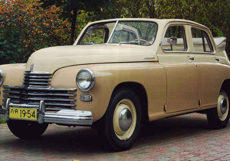 История советского автомобиля «Победа». Несмотря на то, что в стране шла война и Горьковский автозавод еще бомбили, в начале 1943 года конструкторам предприятия было предложено приступить к разработке нового автомобиля, который бы заменил устаревшую к тому времени «эмку» ГАЗ-М1. 3.02.1943 года под руководством Липгарта было начато проектирование будущего послевоенного автомобиля. После НАМИ-1 это был первый советский автомобиль целиком и полностью отечественной разработки, несмотря на некоторое сходство с немецким Опель-Капитаном. Дизайн «Победы» — всецело заслуга художника-графика В.Самойлова, общая компоновка выполнена целой группой под руководством Б.Кирсанова. К этому времени советские автозаводы еще не имели устоявшихся эмблем, поэтому на «Победе» красовалась красная, как цвет знамени, буква «М» от названия «Молотовец». Официальное название автомобиля ГАЗ-М-20 «Молотовец, двадцатая модель». Техническая характеристика. При 2,7-метровой колесной базе длина машины равнялась 4,665 м,