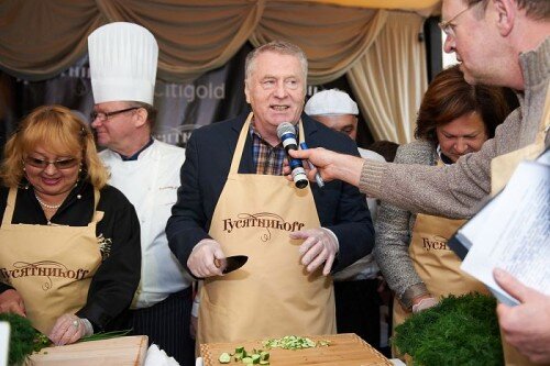 "И вот сделали мы окрошку. У нас было 16 телекомпаний, которые нас снимали. При этом Жириновский, накануне выступая в прямом эфире "России 24" - я сам этого не слышал сначала, я потом прочитал в интернете, я был в театре, и мне постоянно приходили sms: "Чего Жирик творит, "Чего Жирик творит" - так вот, он, выступая в эфире, а его спрашивали о каких-то протестных делах, которые происходят в Москве, и он на какой-то восьмой минуте своего этого прямого эфира - он говорит корреспонденту: "Зачем ходить на какие-то непонятные мероприятия? Нужно ходить на правильные, позитивные. Вот я, например, завтра - вы знаете, куда я иду? Я иду делать самую большую в мире окрошку. Вы идёте туда?" - "Нет". - "Ну так я вам рассказываю, идите. Ресторан "Гусятников" улица Солженицина, дом 2. 16 часов. Чтоб завтра все были. Я повторяю: ресторан "Гусятников". Завтра. Академика Солженицина". И так далее. То есть - и меня спрашивают: сколько ты ему дал денег за рекламу? Нисколько не дал. Просто, вот, у человека был, вот, такой позыв, и он это всё делал.