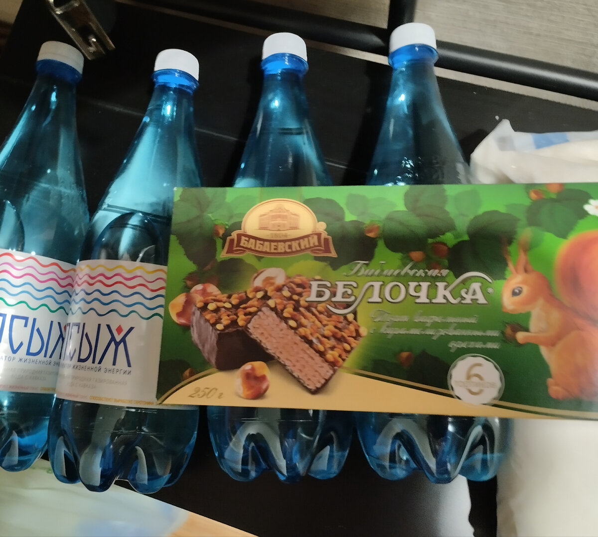 4 литровые бутылки минеральной воды (хорошо, что места хранения ограничены, а то я бы по такой копеечной цене купила бы и 10 бутылок)