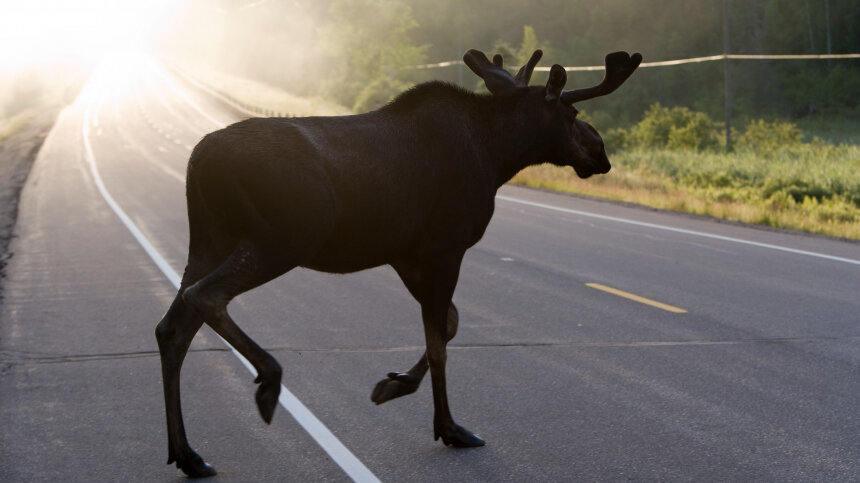 Видео: три лося вышли на МКАД и попали под колеса автомобиля