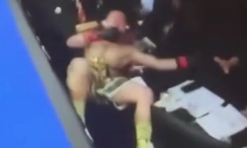 Видео «фатального» падения казахского боксера-полицейского на стол к судьям. Видео