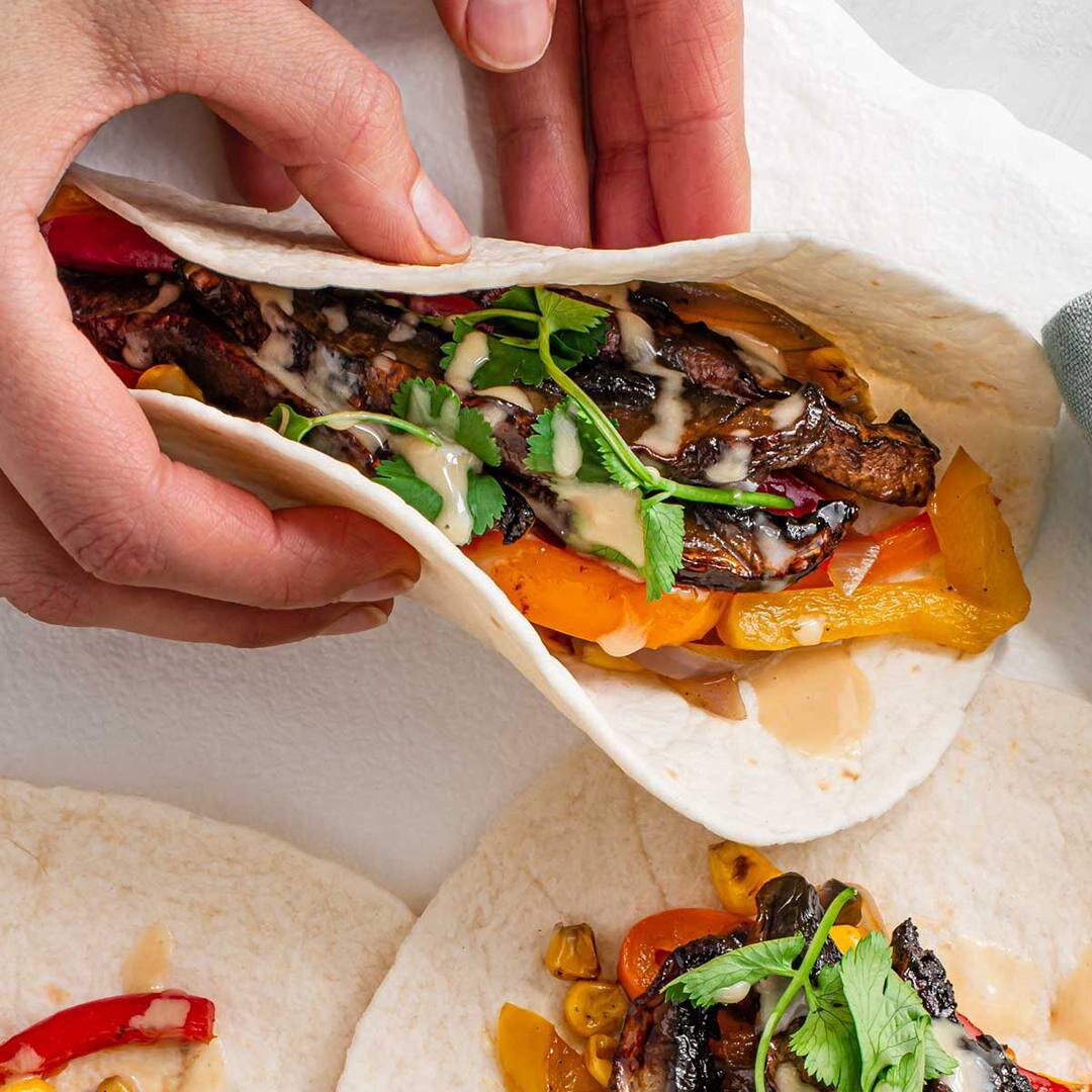 Фахитос с грибами. Рецепт Если вам хочется разнообразить свое меню, то рекомендуем попробовать вкуснейший вегетарианский фахитос от Анджелины Ларю — кулинара и автора книги «Вся свежая и питательная юго-западная кухня Энчилада». Ингредиенты: • 250 г грибов; • половина апельсина; • ½ болгарского перца, очищенного от семян и нарезанного полосками; • ½ сладкой луковицы, очищенной и нарезанной полосками; • 2 ст ложки соевого соуса; • 1 ст ложка оливкового масла; • 1 ч ложка порошка чили; • 1 ч ложка паприки; • ½ ч ложки тмина; • ½ ч ложки чесночного порошка; • щепотка молотого имбиря; • 6 мучных лепешек тортилья (20 см); • 1 большой авокадо, нарезанный ломтиками; • соус сальса. Приготовление: 1. Промойте грибы и нарежьте ломтиками. 2. Выложите грибы в миску и добавьте соевый соус, оливковое масло, чили, паприку, тмин, чесночный порошок и молотый имбирь. Перемешайте и оставьте минимум на 5 минут. 3. Разогрейте сковороду или гриль на среднем огне. Смажьте маслом. Выложите грибы и обж