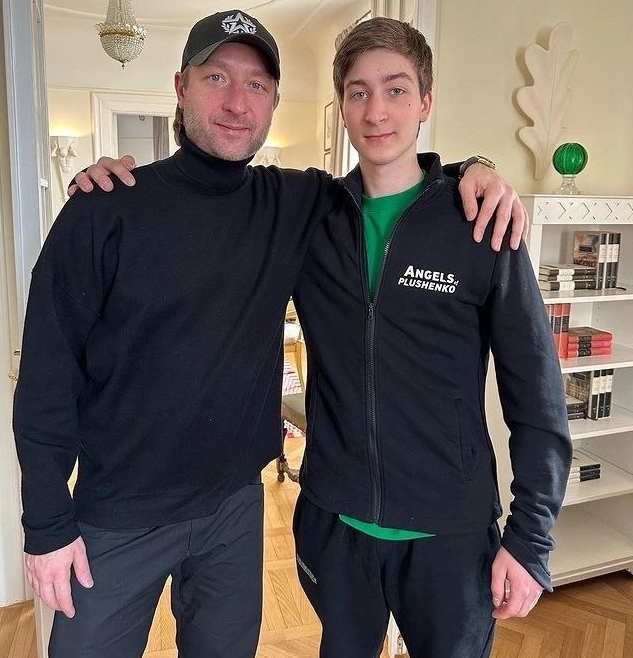 - Евгений Плющенко со своим старшим сыном Егором Евгеньевичем, которому недавно исполнилось 17 лет. Очень похожи ! Егор сын Евгения от его первого, очень короткого брака с Марией Ермак. Развод был болезненным и до 7 лет Егор совсем не общался со знаменитым папой, но сейчас их встречи проходят достаточно регулярно.