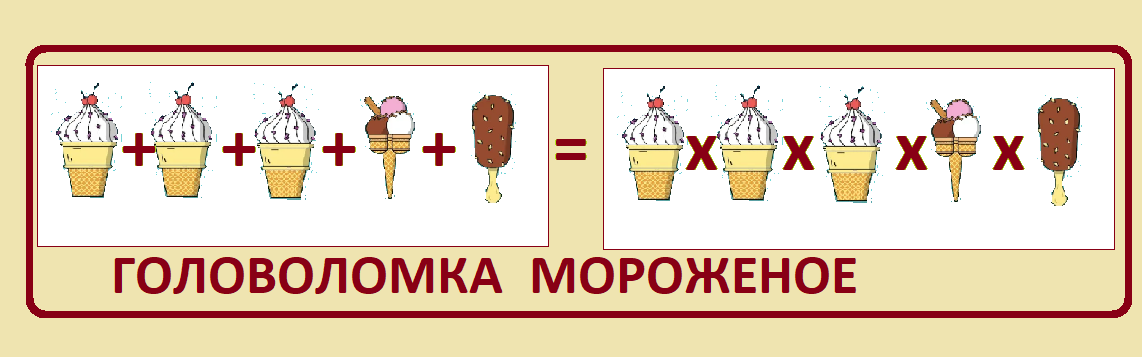 Приветствую читателей и подписчиков канала Теты_математика! Очередная головоломка, в которой зашифрованы фигурки сладких мороженое не отличается от множества подобных задач. Кроме, конечно, . алгоритма всех этих головоломок, в каждой головоломке свой закон составления равенств, и отличается каждый раз от других. И тем они интересны, потому что в новой задаче нужно даже не минутку подумать и найти, чему же равен знак вопроса. Это тоже одна из самых коротких задач. Всего одно равенство в условии. Внимательно рассмотрите рисунок. И найдите только ответ на вопрос. А вопрос изображён в одном из рисунков. Такие равенства соблюдаются только для определённого набора чисел. В этом и суть загадки. Внимательно рассмотрите рисунок. И в комментариях напишите только ответ на вопрос. Посмотрите предыдущие публикации почти такие же, как и данная. И решение выше опубликованной головоломки станет проще. Смотрите комментарии к статьям и видео. Спасибо за решение любой из головоломок, а особенно