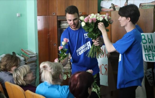 18 июня, в День медицинского работника представители волонтерского центра партии «Единая Россия» приехали в военный госпиталь воздушно-десантных войск, где проходят лечение и курс реабилитации военнослужащие, чтобы поздравить медицинских работников с их профессиональным праздником. Добровольцы подготовили для врачей сладкие подарки и плакаты с поздравлениями, словами благодарности и цветы. Также для персонала лечебного учреждения активисты исполнили песни под гитару про труд работников медицинских служб. «Врачи работают с утра до ночи, спасая жизни и здоровье наших защитников. Волонтерский центр регулярно оказывает поддержку сотрудникам госпиталя, чтобы поблагодарить их за нелегкий труд. От души желаем медикам региона, всем, кто на дежурствах, в операционных борется за жизнь своих пациентов, доброты, тепла, гармонии и благополучия», - прокомментировал праздничную акцию федеральный координатор «Молодой Гвардии» по ЦФО, депутата Тульской городской Думы, руководителя Тульского регионально