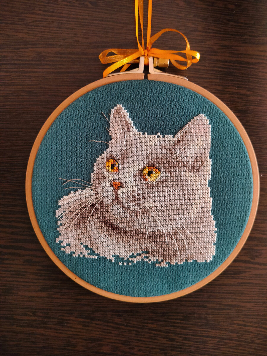 Здравствуйте, уважаемые гости моего канала, меня зовут Ольга, буду делиться с вами своим хобби - вышивка крестиком. Вышивать начала в 2016 году, за это время накопилось много готовых работ, в последний год, правда, на меня напал "невышивун", совсем не было свободного времени, поэтому сейчас хочу снова взяться за нитки и иголку))) Ну, а знакомство начну с аватарки, этого милого котика, символа 2023 года, набор был от производителя "Алиса", думаю многие его знают, обложка к сожалению не сохранилась. В наборе, конечно, шла белая канва, но мне почему-то захотелось заменить её на темно-зеленую от Гаммы, даже не знаю зачем...все-таки думаю на белой канве смотрелось бы лучше...ну да ладно, котик висит на шкафу, прям вот так в пяльцах и радует меня))) В общем, если вы любите смотреть вышитые работы, то подписывайтесь на мой канал, должно быть интересно!😘😘