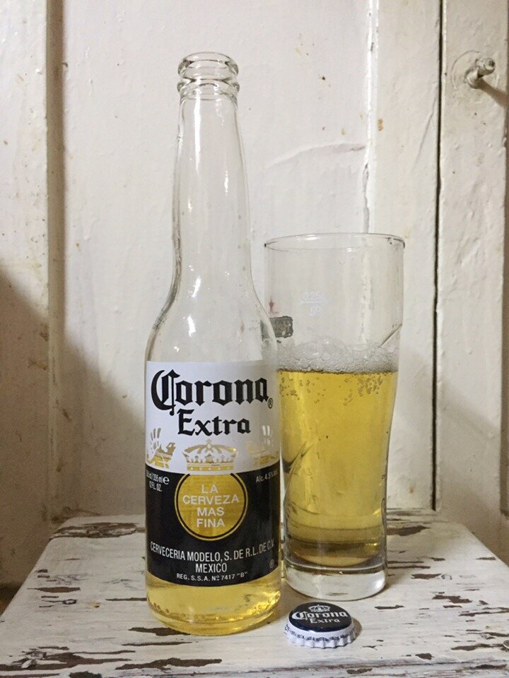 Статистика: пивной напиток, пастеризованный, экстрактивность начального сусла 11,3%., алкоголь 4,5% об., состав: вода, солод ячменный, кукуруза, рис, хмелепродукты, антиокислитель аскорбиновая кислота 0,0015 г / 100 г, эмульгатор Е 405 0,004 г / 100 г., объём 0,355 л. Изготовитель: Compania Cervecera del Tropico, S. de R. L. de C.V. Blvd, Мексика, Импортёр в Российскую Федерацию: АО «САН ИнБев» Россия, Московская область, г. Клин По-братски: мексиканский день будет сегодня! Решил испить Корону. При откупоривании сразу в нос бьет запах нашего местного пива из ближайшего магазина «Продукты». Но, сделав парочку глотков понимаешь, что пиво не самое плохое. Тут есть горчинка вполне ясная, но вкус вполне мягкий, а пенной шапки нет, довольно сильно похоже на Miller. Короче, пиво самое стандартное, не плохое, но и каких либо изысков вы не найдёте. Кстати, на лицевой части бутылки (ту, что вы видите на снимке) этикетка напечатана на самой бутылке. А вот задник клеется на прозрачной наклейке с и