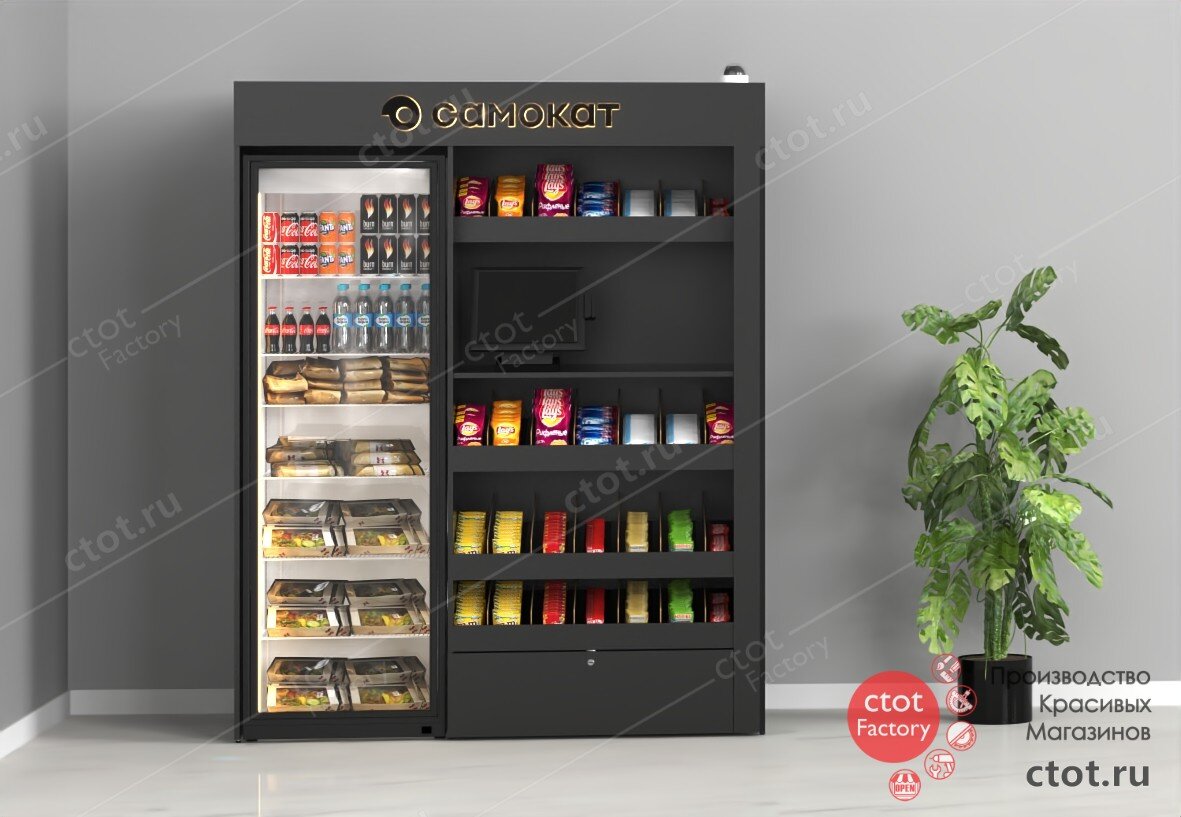 Современный ритм жизни и стремительное развитие технологий непрерывно меняют способы, которыми мы покупаем и получаем товары и услуги. В этой эпохе удобства, фабрика Ctot Factory идет в ногу со временем и разработала микромаркет самообслуживания для компании по доставке продуктов "Самокат". Этот уникальный микромаркет предлагает потребителям удобство и выбор, меняя игру в сфере самообслуживания. Микромаркет "Самокат" предлагает простой и интуитивно понятный интерфейс для потребителей. С помощью мобильного приложения или терминала самообслуживания, покупатели могут легко найти нужные продукты, просмотреть информацию о товарах, выбрать необходимое количество и совершить покупку всего в несколько нажатий. Это упрощает процесс покупки и сокращает время, потраченное на поиск товаров. Чистые линии, современные формы и удачно подобранная цветовая схема макромаркета создают привлекательный и современный облик. Использование света и освещения также играет важную роль, подчеркивая особенности ин