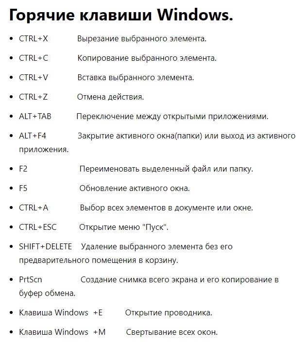 - ALT+F4 Закрытие активного окна(папки) или выход из активного приложения.