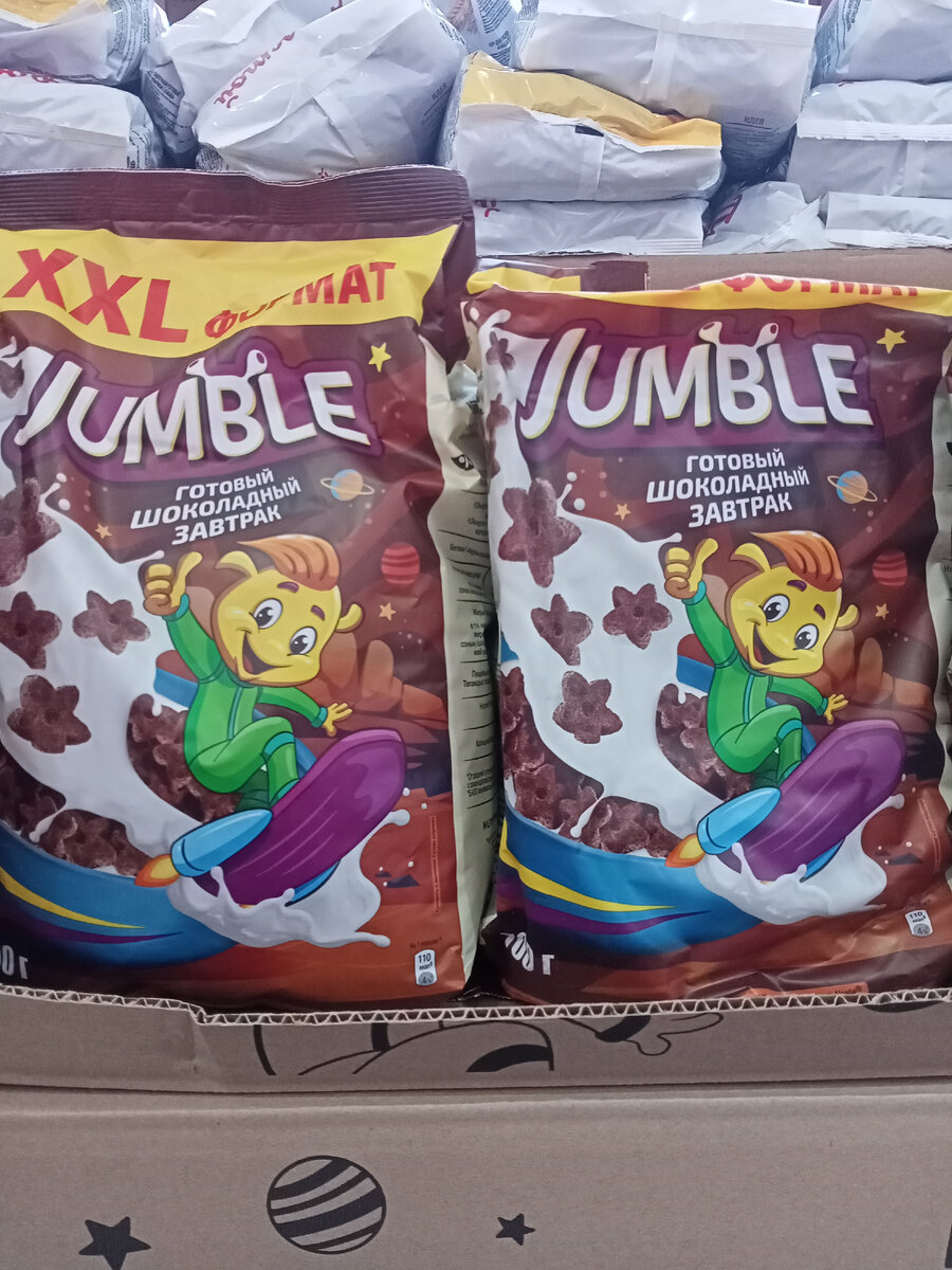 Приветствую вас, уважаемые читатели. Рада, что нашли время заглянуть на мой канал. В сегодняшнем обзоре расскажу вам, какие новинки появились на полках магазина Светофор и по каким ценам. В продаже появились такие готовые шоколадные завтраки Jumble. Производитель завтраков Nestle, Россия. Вес упаковки завтраков 700 грамм, цена 162.50. Завтраки шоколадные в виде звездочек, в молоке не раскисают. Дочке по вкусу не понравились. Печенье-сендвич Timi marshmallow с клубникой и сливками. Российское производство. Коробка содержит 6 пирожных в индивидуальной упаковке, стоимость коробки 72.50. Пирожное неплохое, изредка покупаем, в других магазинах цена намного выше. Кофе растворимый сублимированный Rich Dor. Российское производство. Вес банки кофе 220 грамм, цена 242.40. Кофе по качеству и вкусу никакое. Не стоит тратиться на такой товар. Сухие сливки Сноуприма. Российское производство. Упаковка сливок, весом 400 грамм, стоит 111.90. Сливки купила для выпечки, иногда в кофе добавляю, хорошо ра