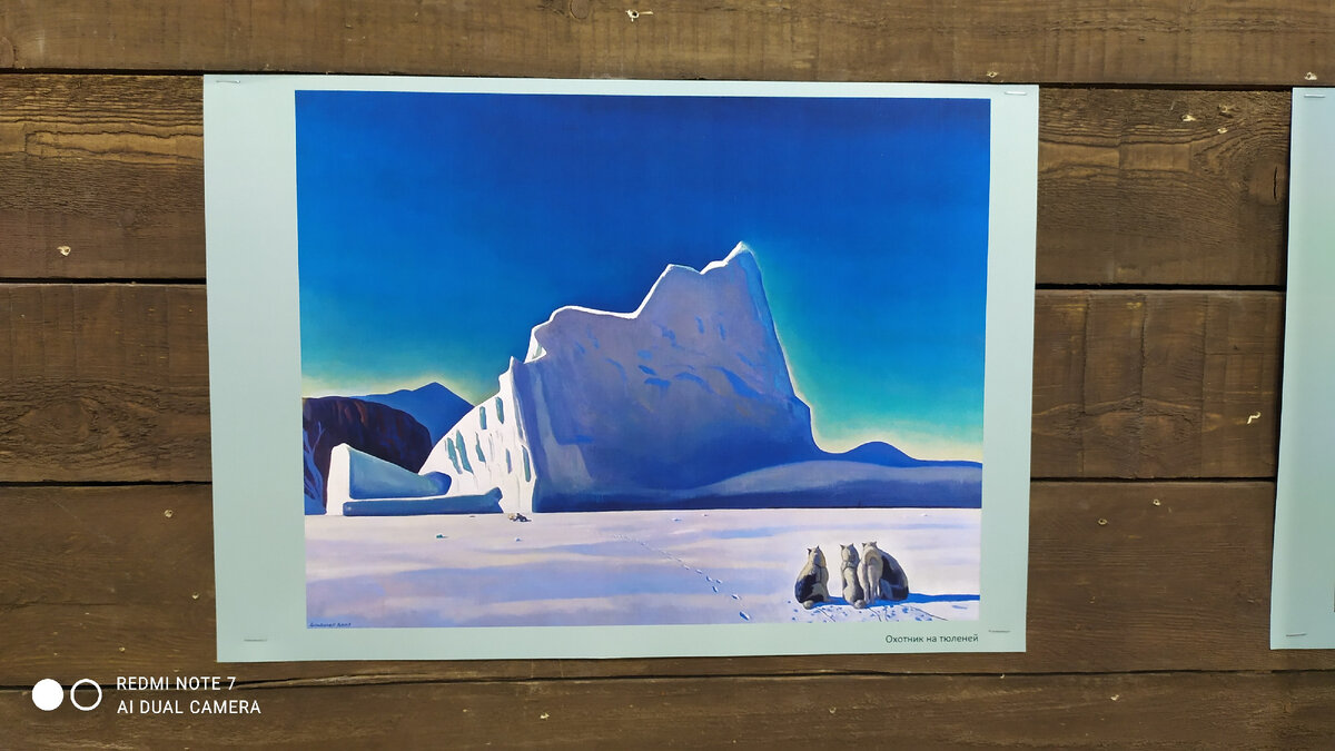 Впервые писала копию с картины художника. Ох, это значительно сложнее оказалось для меня, чем с фотографии 🖼🎨🖌 Моя история с этой картиной Рокуэлла Кента "Охотник на тюленей" началась ещё в начале января, когда пошла на мастер-класс в музей Ряузова. Там предлагалось за полтора часа нарисовать акварелью копию с этой картины. Опыт показал, что с акварелью я работать не умею и колористику не знаю. У меня не получилось от слова совсем. Эмоции зашкаливали, едва сдержалась, чтобы не скомкать лист и не выбросить его. Дома свернула листочек пополам и убрала в стол. Подумала, что как - нибудь перерисую дома. И забыла про это.... Придя в Графику как - то, нужно было выбрать, что писать. Просматривая свои фотографии, наткнулась на фото картины из музея, которое я сделала в тот день в январе. Показала преподавателю Марии. И начали писать 🖼 Это было 19 апреля. Писать начали маслом. И тогда мне тоже показалось, что всё сложится быстро. Эскиз и подмалевок готовы. И тут началось самое-самое 🔥Вро