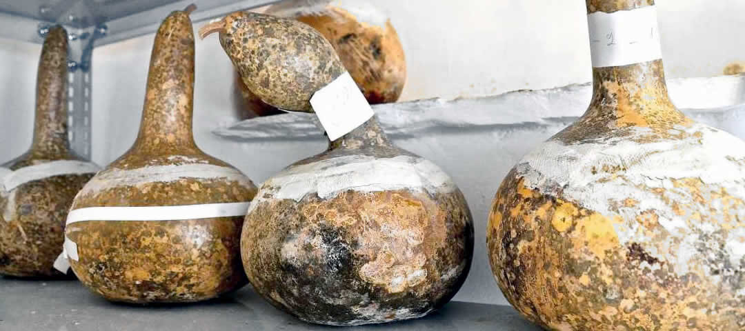 Во вкусе критской гравьеры чудятся ароматы горных трав и прохлада митато – круглой пастушьей хижины из камней, где созревает сыр. А вот на острове Тинос (Киклады) сыр зреет в… тыковках-колокитах! Называется он кари́ки и считается особенным не только на Тиносе, но и во всей Греции. Готовят его из коровьего молока, для созревания помещают внутрь сухой тыквы, посыпав сверху крупной солью и плотно запечатав отрезанной заранее верхушкой. В этой колоките он и набирается зрелости и вкуса (от 40 дней до семи месяцев), чтобы стать похожим на рокфор с его голубыми прожилками. Этот древний способ сыроделия, издавна используемый тиносцами в горных деревнях, чуть было не забыли. Но теперь он возрождается, и уникальный карики – соленый и острый, твердый снаружи и мягкий внутри – занимает достойное место в сырной палитре Тиноса. А вот сыр малату́ни «доводят до ума» в маленьких соломенных корзинках, которые придают ему особенную форму – грушевидную. И только потом эти «грушки» подвешивают на воздухе д