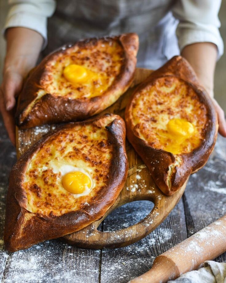 Ингредиенты: - 500 г муки - 250 мл воды - 1 яйцо - 300 мл молока - 7 г сухих дрожжей - 40 г сливочного масла - 1 ч. л. сахара - 0,5 ч. л. соли - 600 г сыра сулугуни - 80 г твердого сыра (по желанию) - 1 ст. л. растительного масла Приготовление: 1. В теплой воде растворите сахар и дрожжи. Оставьте на 10 минут. Просейте муку, добавьте соль и влейте дрожжи с водой. Замесите тесто. 2. Вымешивайте тесто 10-15 минут, затем накройте пищевой пленкой и оставьте на 1 час. 3. Для начинки натрите сулугуни на крупной терке или нарежьте мелкими кубиками. Добавьте тертый сыр и перемешайте. 4. Разделите тесто на 4 части. Раскатайте каждую часть в круг диаметром около 30 см. 5. Смажьте сковороду растительным маслом и разогрейте на среднем огне. Выложите тесто на сковороду и разровняйте его. 6. Выложите на тесто начинку и загните края теста внутрь, чтобы получился мешочек. 7. С помощью вилки сделайте несколько проколов в тесте. Накройте сковороду крышкой и готовьте хачапури на среднем огне 10-12 минут
