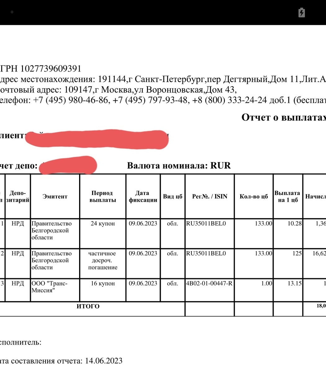 Эта неделя выдалась удачной с финансовой точки зрения. Во вторник пришли купоны по двум облигациям и одно частичное погашение. Обо всём по порядку. Пришли купоны по облигациям БелгОбл2017 и по ним же частичное погашение. Кроме них была выплата по купону ООО"Транс-Миссия". Но ни это главное в этих выплатах, которые, несомненно, радуют меня. В начале июня вышло обновление порядка сбора НДФЛ с купонных выплат по облигациям. И вот в чём разница: Это предыдущая выплата купона ООО"Транс-Миссия". Из отчёта брокера видно, что сразу же удержан налог в размере 2-х рублей. А в июньской выплате этого налогового вычета нет. Так вот в чём новость и радость. Теперь брокер продолжит удерживать налог с купонных выплат, но не сразу, а в четырёх случаях: Вроде бы незначительная новость от нашего правительства и налоговой. А разница во владении деньгами (налогом) чуть дольше (до Нового года), чем до этого огромна. Теперь налоговую часть нашего дохода можно пустить в оборот и заработать ещё денег. Как в мо