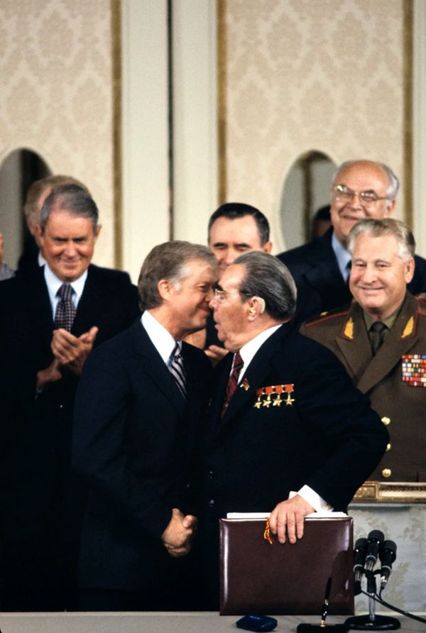 18 июня 1979 года во время встречи в Вене президент США Джимми Картер обменялся поцелуем с Генеральным секретарём ЦК КПСС Леонидом Брежневым. Произошло это именно по инициативе главы Белого дома, и для Леонида Ильича было несколько неожиданным. Отзыв Брежнева в тот день о его собеседнике: «А этот Картер мужик вроде бы ничего! Только уж больно скучный! И с разоружением у него ничего не получится — не дадут ему это сделать».