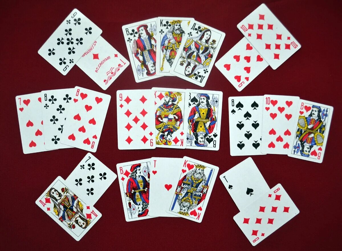 Более сложный расклад, который даст немало информации к размышлению и поможет разобраться с событиями в прошлом, настоящем и будущим. Это гадание на картах, пожалуй, самое точное. Возможно такое гадание на игральных картах на любимого человека, если ты хочешь понять, что у него на душе. При гадании на игральных картах на мужчину обязательно сосредоточься на нем, когда тасуешь колоду. Чем ярче ты представишь интересующего тебя человека, тем правдивее будет расклад. Как гадать на игральных картах в этом случае? Перетасуй карты и вытяни, не глядя, одну за другой 13 карт – их необходимо расположить одну за другой слева направо рубашками вниз. Каждая нечетная карта будет отвечать на определенный вопрос: Расшифровать полученный ответ помогут значения каждой из 36 игральных карт при гадании. Черви Шестерка – дорога. Семерка, восьмерка – встречи, знакомства, разговоры. Девятка – любовь. Десятка – планы, надежды. Валет – проблемы. Дама – женщина (часто та, кто и задает вопрос). Король – мужчина