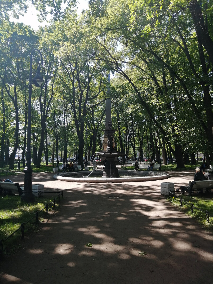 Рядом с Университетской набережной Большой Невы расположился старинный теннистый сквер-сад Румянцевский .Он находится между 1-й и 2-й линиями Васильевского острова . Неподалеку дворец Александра Меншикова. Румянцевский сад возник в 1865 — 1866 годах стараниями и средствами петербургского купца первой гильдии Степана Фёдоровича Соловьёва, сад так и называли— Соловьёвский сад. Соловьёв был владельцем двух домов, выходящих к площади,где и сам проживал . Из истории.Сначала на этом месте был Меншиковский рынок, склады для грузов, доставляемых по реке. Потом парадный плац Кадетского корпуса . В 1818 году в центре площади появился обелиск, посвящённый победам графа Петра Александровича Румянцева-Задунайского в в битвах 1770 года на Ларге и Кагуле, спроектирован зодчим Винченцо Бренна.Перенесен с Марсова поля .На его месте теперь памятник Суворову. Высокий четырёхгранный обелиск из гранита увенчан скульптурным изображением орла, сидящим на золотом шаре. Разрабатывал проект скве