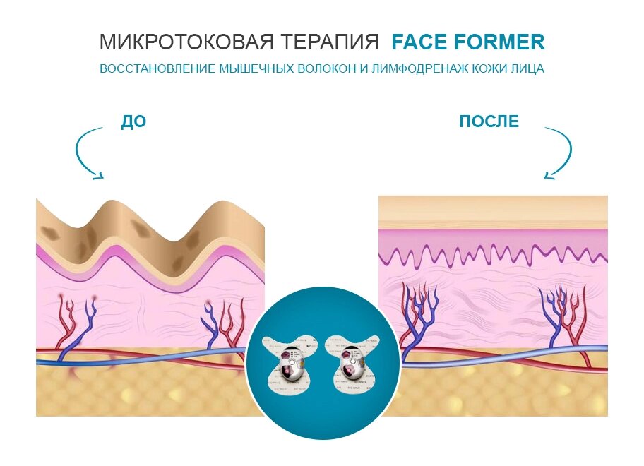 Во время тестирования микротоковых устройств обнаружили, что электрические токи стимулируют выработку аденозинтрифосфата в коже. Это важная молекула для клеточного метаболизма, которая стимулирует образование нового коллагена и эластина, снабжает мышцы энергией. В результате обработанные участки кожи становятся более упругими и гладкими.