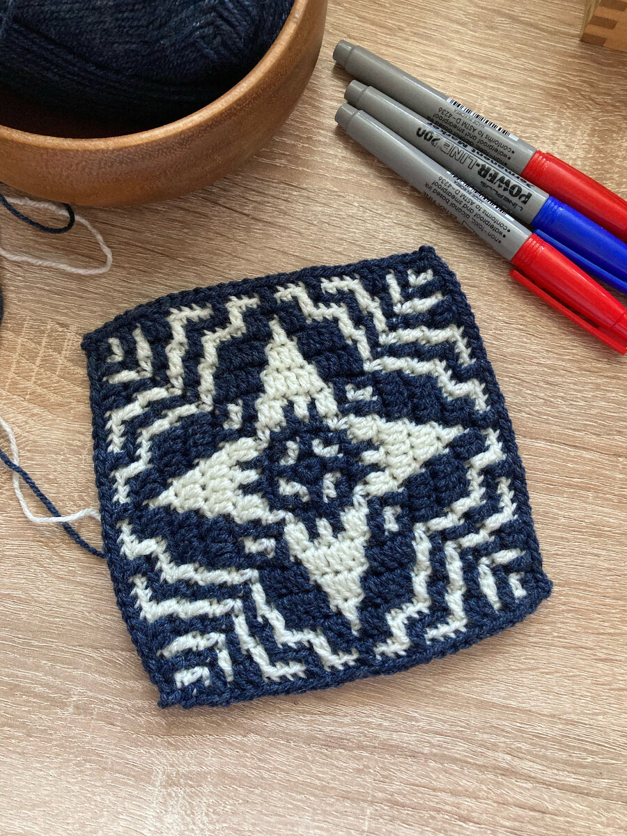 Здравствуйте дорогие рукодельницы! Этот мотив вязала по принципу полного заполнения поля вокруг мозаичного узора. Сначала нарисовала схему основного узора, который будет вязаться одним цветом, а свободные участки вокруг него полностью заполнятся цветом фона. В моём случае узор связан пряжей белого цвета, а фон - пряжей синего цвета. Красивым получился центр квадрата, можно использовать как самостоятельный мотив (14 рядов схемы) Первый вариант мотива Схема первого варианта Связав мотив, поняла что мне хочется его изменить, но не сам мотив, а только его уголочки, сделать их более подчеркнутыми. Изменения внесла только в последний ряд. Второй вариант мотива Схема второго варианта мотива Это ещё не всё, есть третий вариант мотива, для тех, кто не может определиться какой вариант больше нравится (я точно не смогла, мне нравится и первый, и второй). Так и появился третий вариант: Вот теперь всё, спасибо, что дочитали!!! Всем ровных петелек!!! Светлана, автор канала!!!