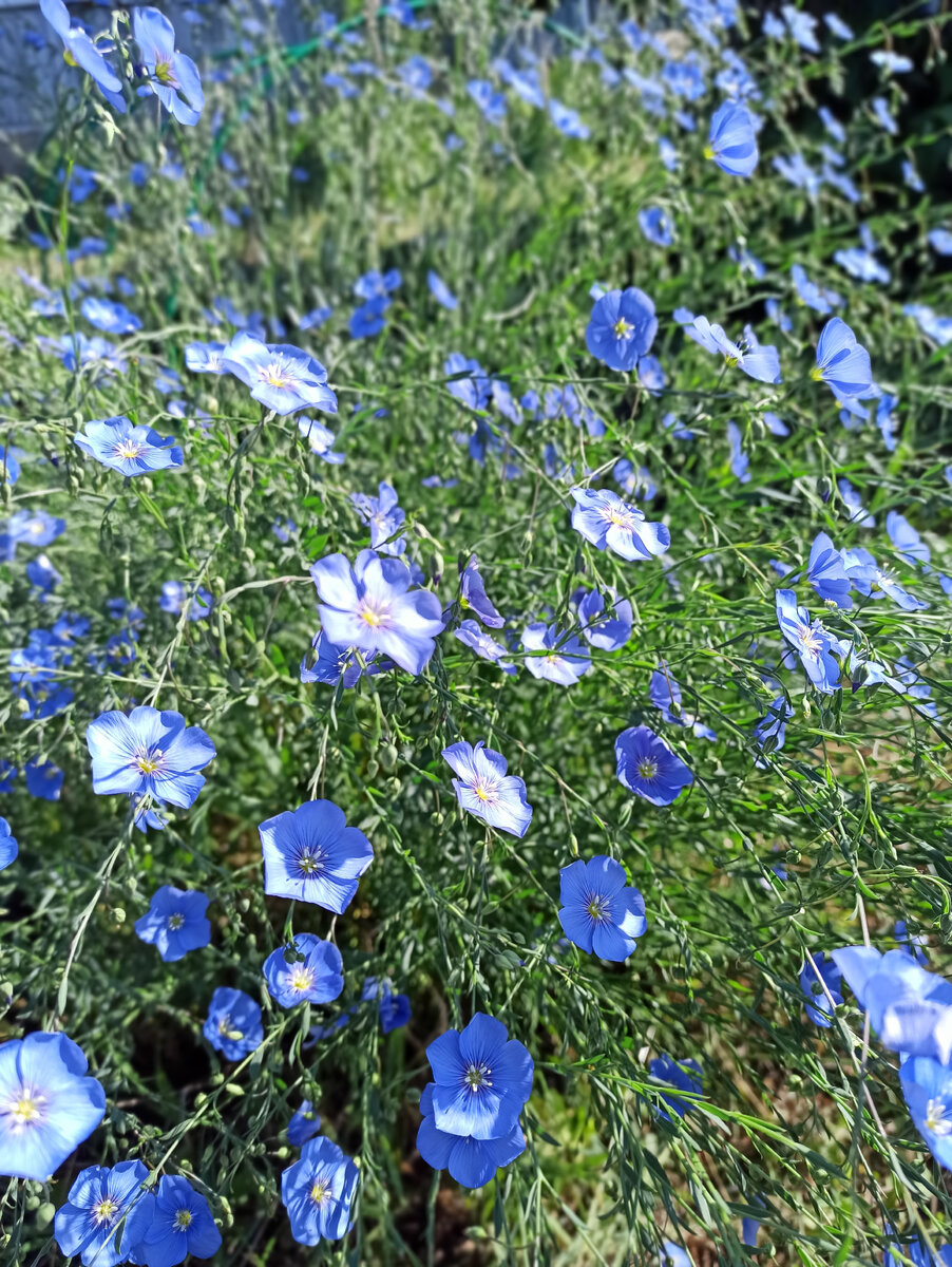 Лëн - это удивительное растение. Мы больше привыкли говорить о льне, как о готовой натуральной ткани. Но лëн - это ещё и замечательный многолетник для цветника. Он не требует ухода. Посадив его однажды, каждый год вы будете любоваться нежными голубыми цветочками. Каждое утро кустик льна открывает новые бутончики-глазки, а к вечеру осыпается. Очень нежное и красивое растение!