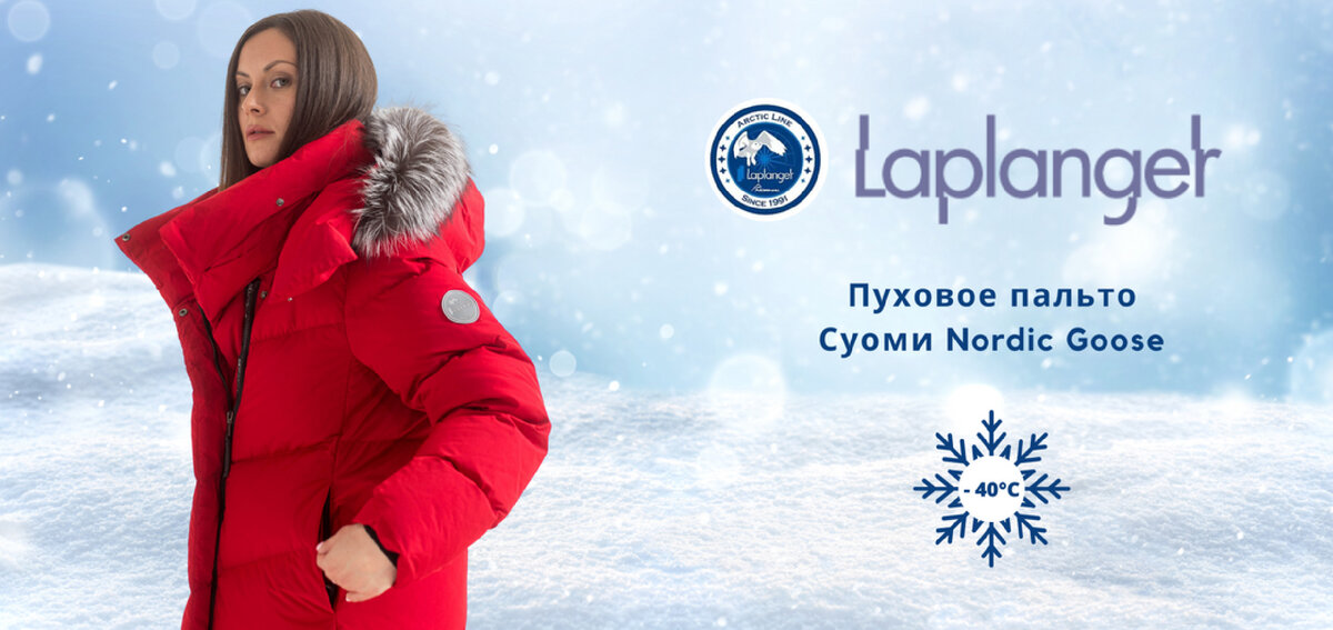 Пуховое пальто LAPLANGER Суоми Nordic Goose позволяет стильно выглядеть даже в сильные морозы.
