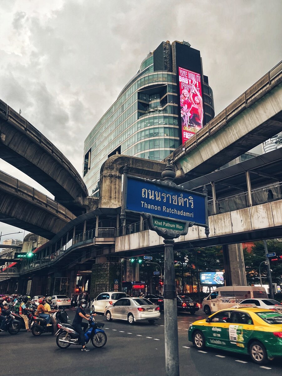 Савади ка, Бангкок!🇹🇭 Меньше двух часов на автобусе из Паттайи и мы в сиамской столице. Посмотрите на это хмурое небо – мегаполис настроен крайне серьезно, придётся как-то договариваться, согласовывать его намерения отыграть сезон дождей по полной и наши наполеоновские планы убить ноги прогулками по городу. Верю, что сдружимся с этим своенравным великаном. Кстати, добираться из Паттайи в Бангкок очень легко и удобно. Автобусы ходят с 7 утра до 9 вечера каждый час отсюда (Bus Station). Цена: 143 бата (330 ₽). Идёт 2 часа, привозит прямиком в главный аэропорт Бангкока Суварнабхуми. Оттуда можно на электричке за полчаса доехать до центра, цена около 40 бат (90 ₽), в зависимости от того, на какой станции выходите. Что по недвижимости? С жильем в Бангкоке непросто. Мало кто из арендодателей хочет заморачиваться с договорами меньше, чем на год. И цены, конечно же, выше, чем в Паттайе, раза в полтора. Но несмотря на все сложности, мы на удивление быстро нашли квартиру. Когда все ресурсы
