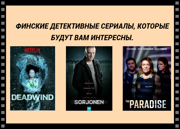 Рейтинг Кинопоиска: 6.8 Количество сезонов: 3 Количество серий: 28 Мне понравился этот финский сериал с его историями длиной в сезон. В каждом случае появляется множество подозреваемых и мотивов, заставляющих зрителя гадать, кто же во всем повинен. Несмотря на то,